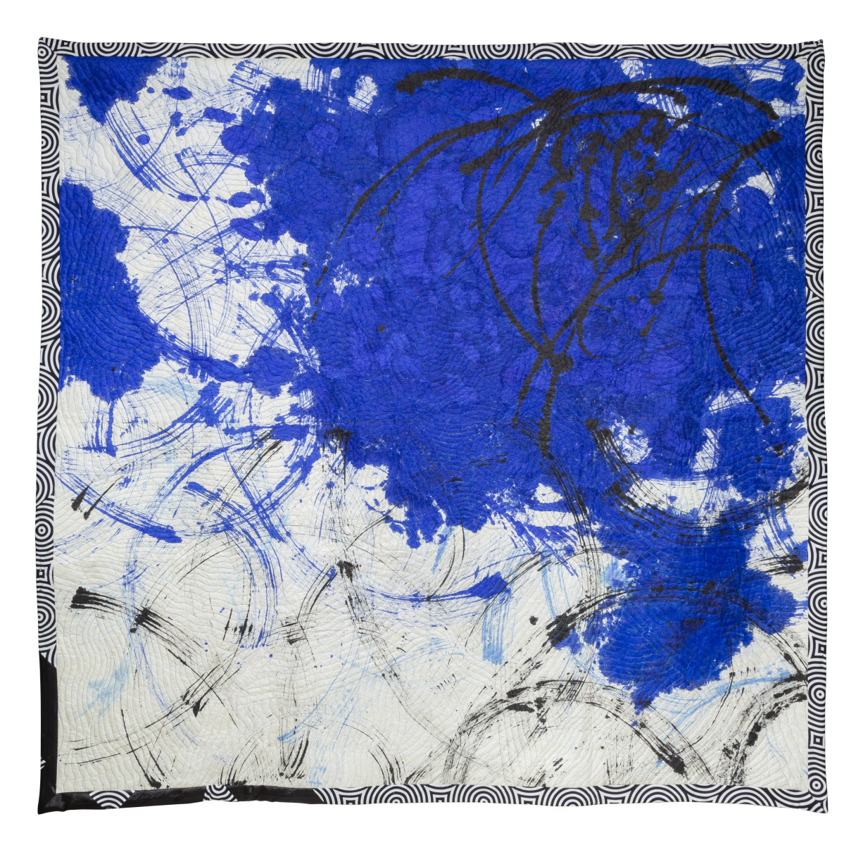 和三角箒にインクや墨汁を含ませ密と疎のバランス