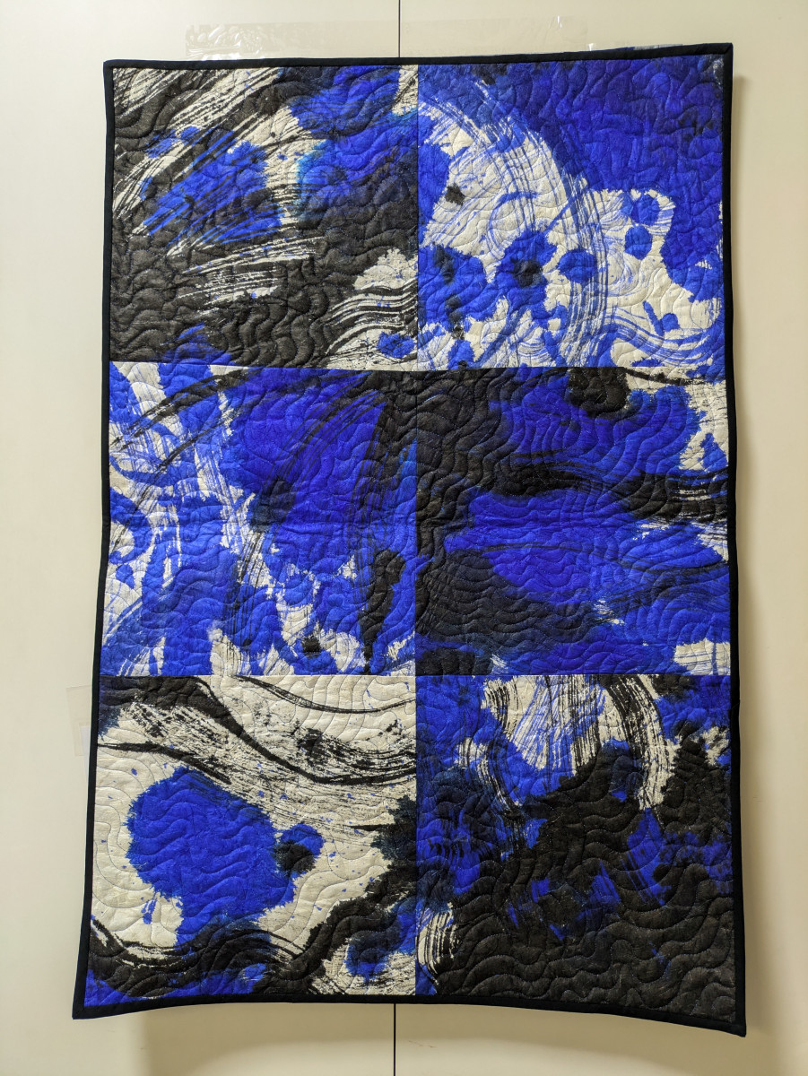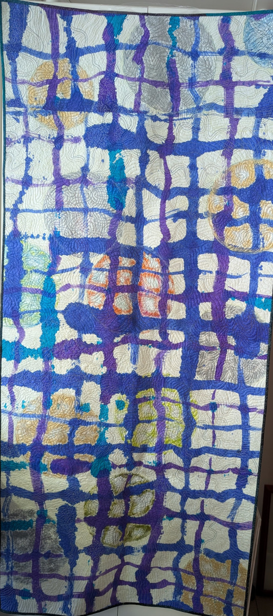 フランスインクを筆に含み格子状に描・絵具を塗る・チョーク補足